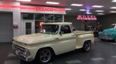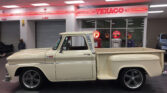 1964 Chevrolet Custom C10 Pick Up – Frame-up restoration with an arrow-straight body and antique white paint. Powered by a smooth 350 V8 with a Turbo 350 transmission. Features include power steering, power disc brakes, air conditioning, and a custom leather bench seat. Upgrades include a Dakota Digital dash, Sony CD player, new oak bed, and 18″ & 20″ alloy wheels. A stunning, reliable classic!